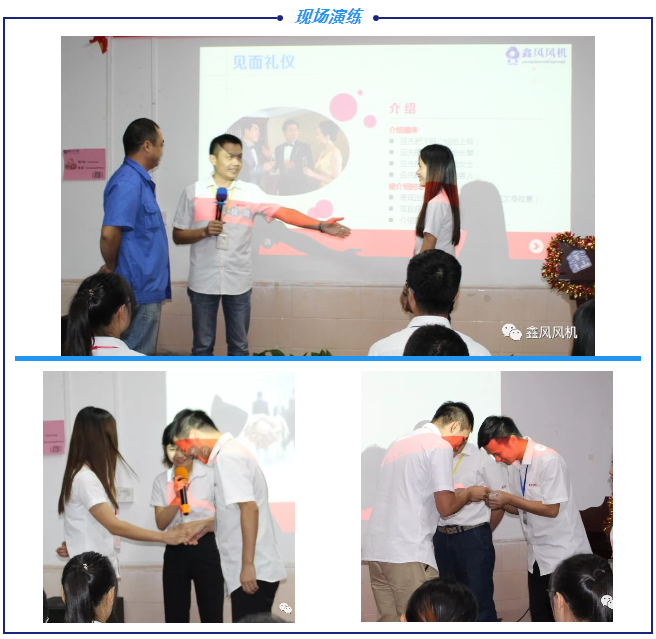 “做人先學(xué)禮,以禮行天下”,禮儀教育是人生的第一課。2018年9月10日6點(diǎn),為進(jìn)一步提升公司員工整體形象,給客戶提供更好更優(yōu)質(zhì)的服務(wù),鑫風(fēng)風(fēng)機(jī)特此進(jìn)行了一場(chǎng)禮儀培訓(xùn),對(duì)社交禮儀和商務(wù)禮儀等方面進(jìn)行強(qiáng)化訓(xùn)練,提升整體精神面貌。