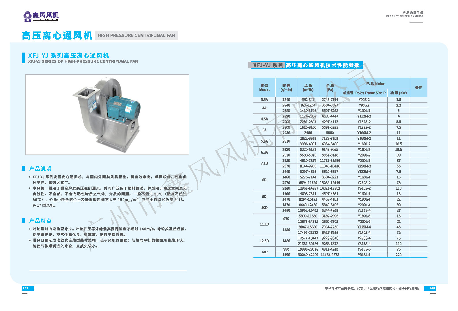 XFJ-YJ系列高壓離心風機可取代舊式的8-18型離心風機、9-27型離心風機。
